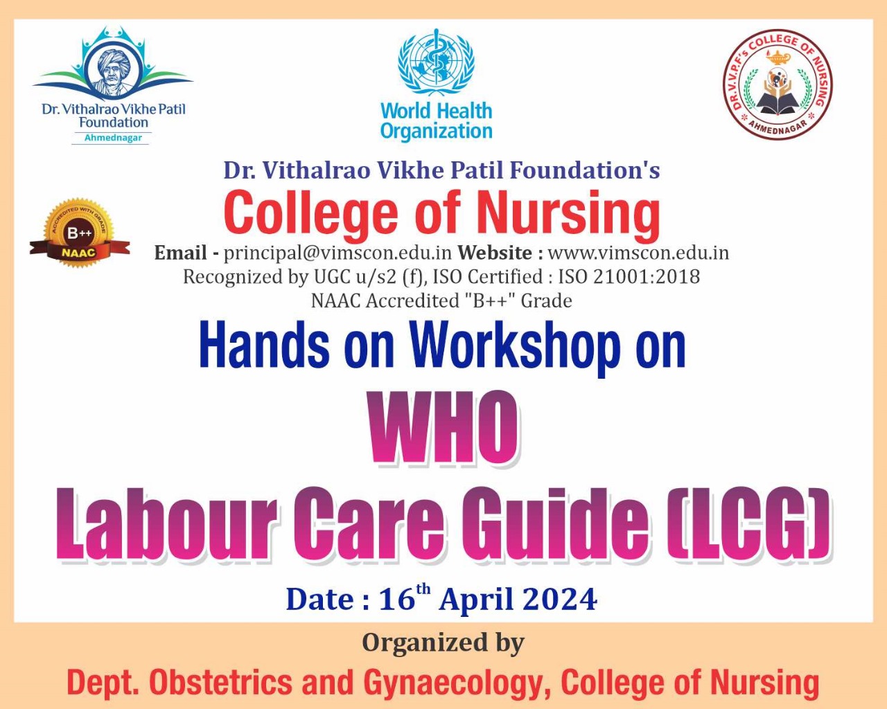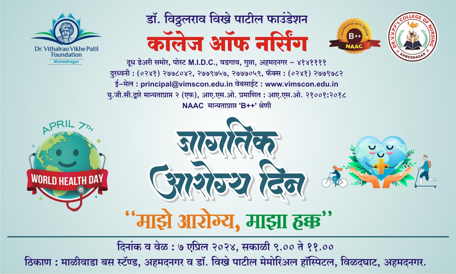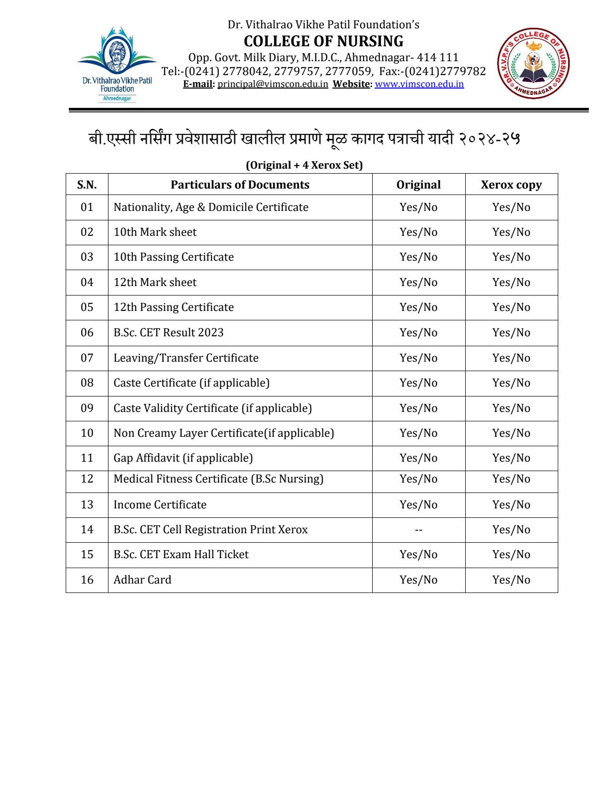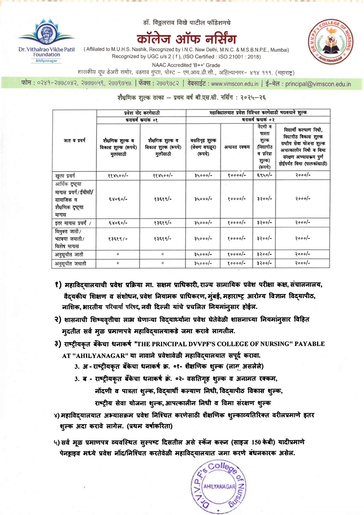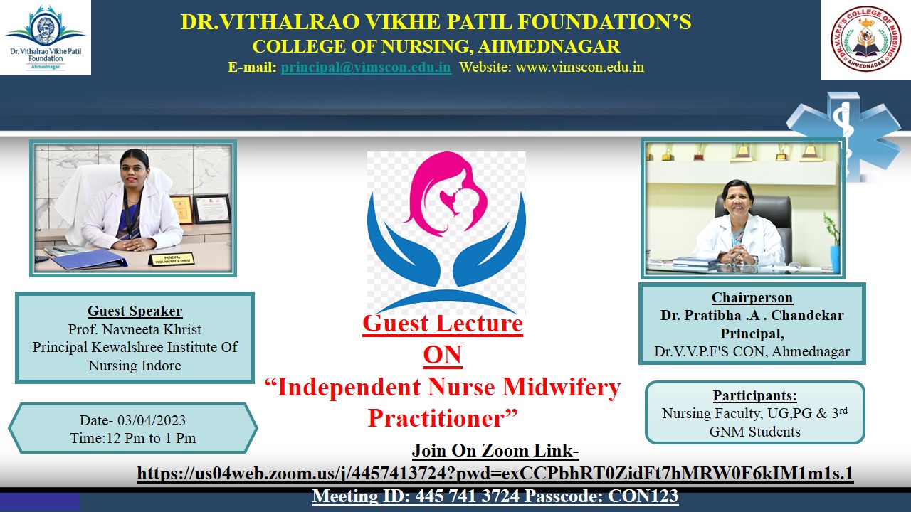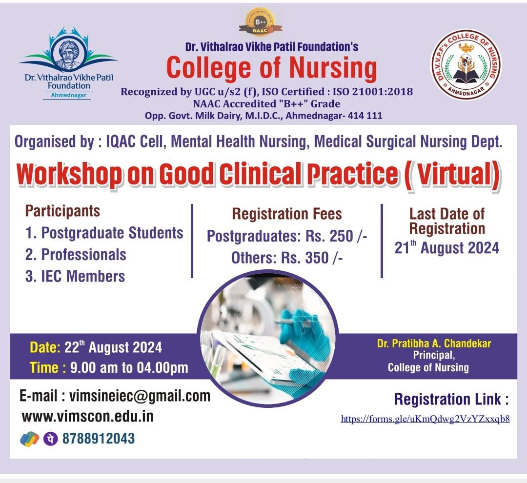 Dr. Vithalrao Vikhe Patil Foundation’s, College of Nursing, Ahilyanagar, is recognized by Government of Maharashtra, Maharashtra Nursing Council, Mumbai and Indian Nursing Council, New Delhi.