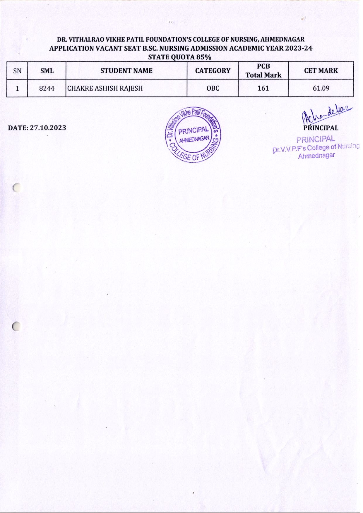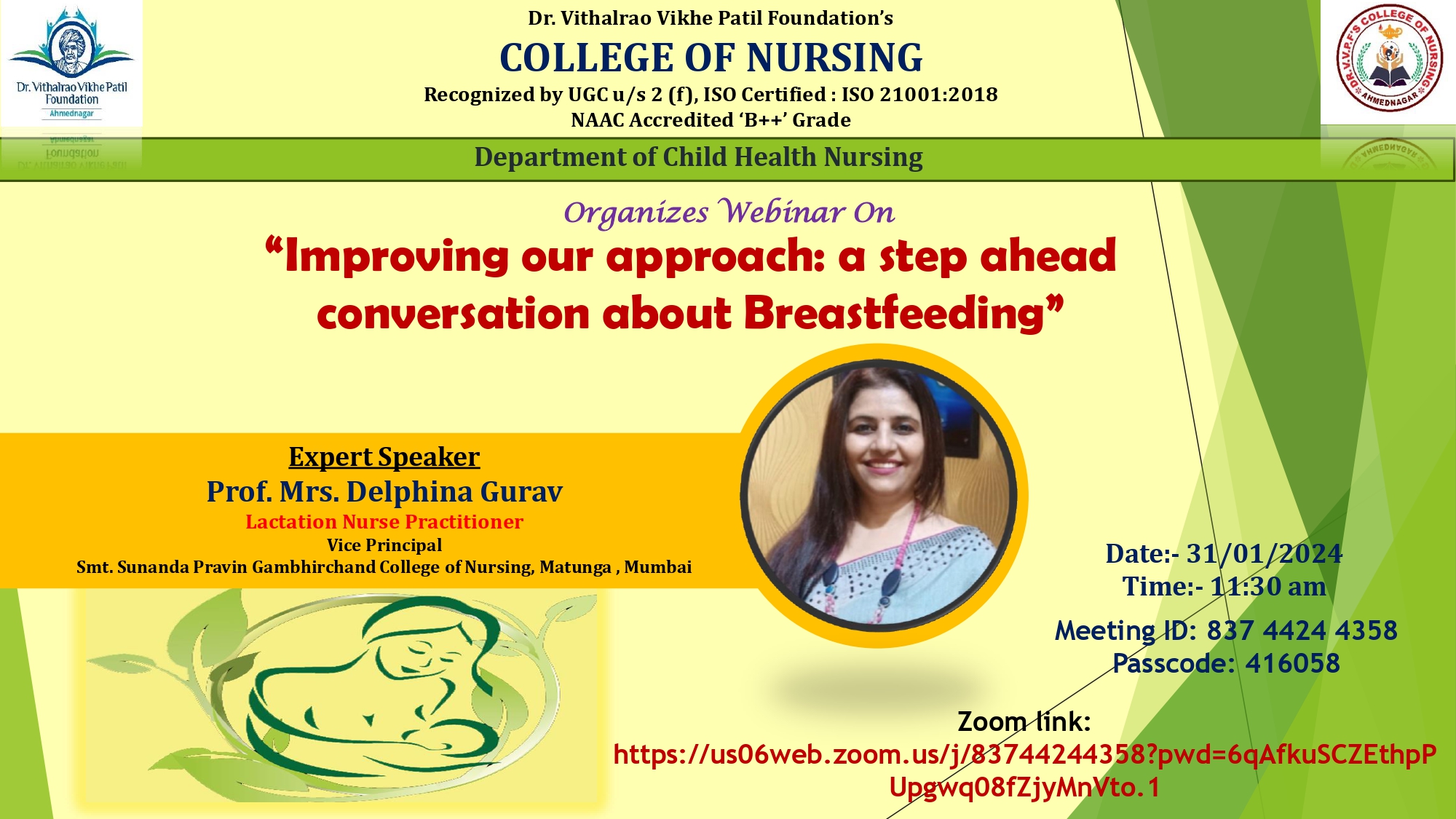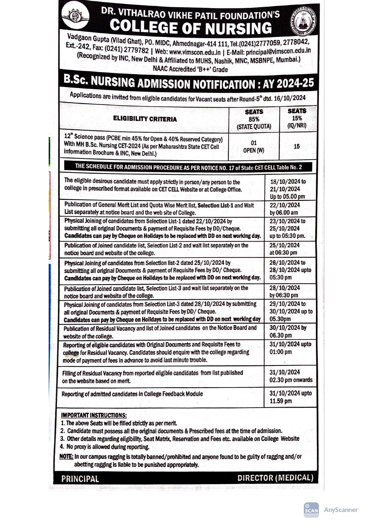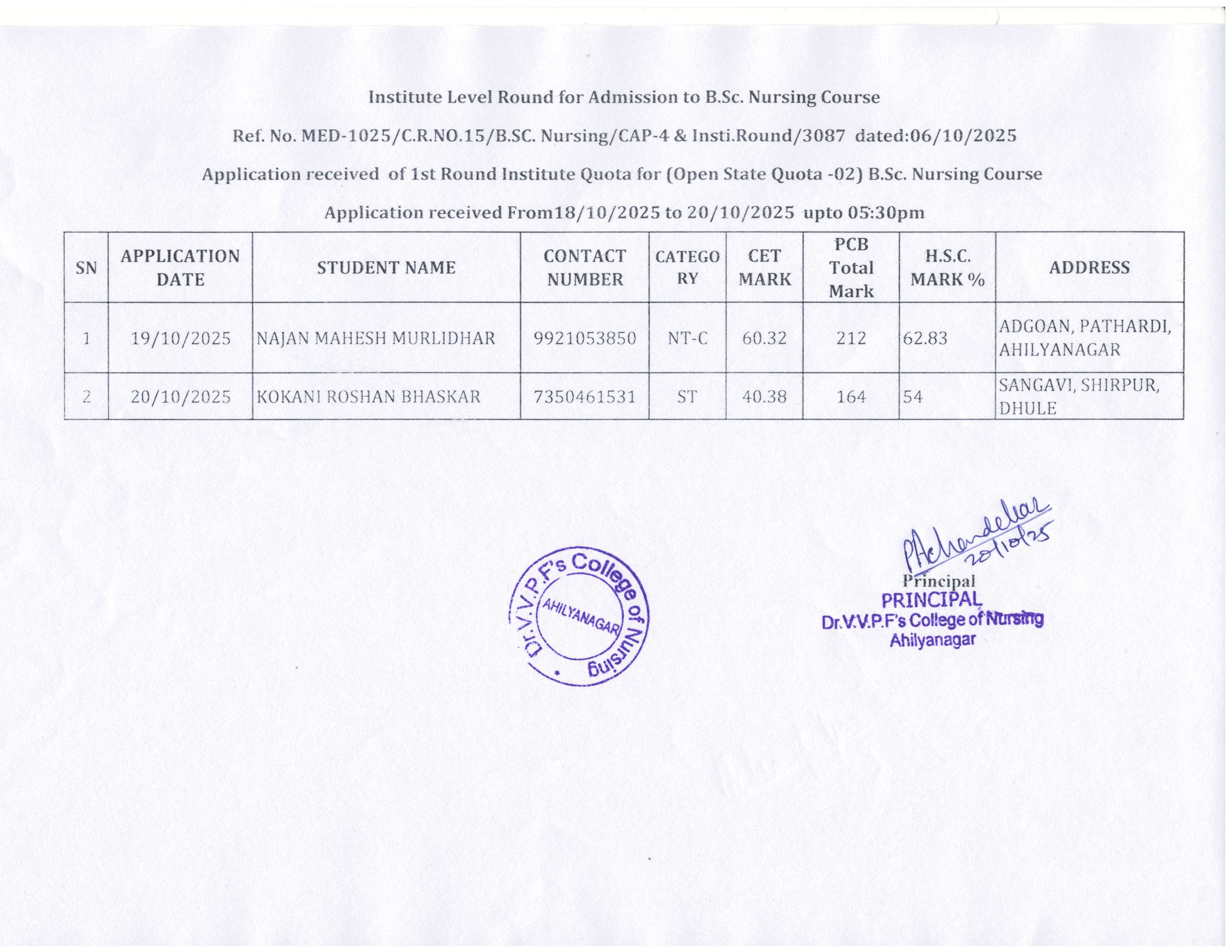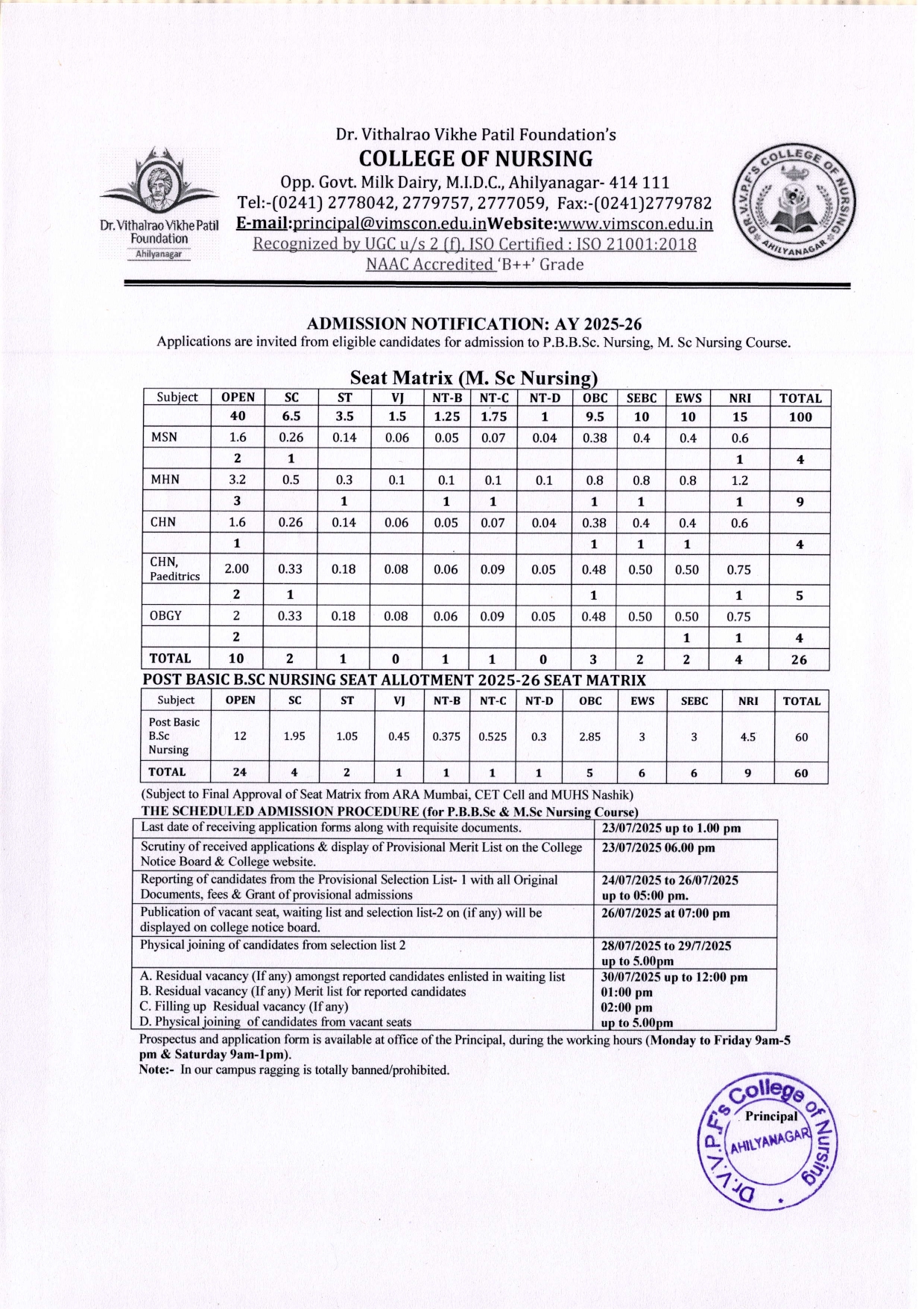 Dr. Vithalrao Vikhe Patil Foundation’s, College of Nursing, Ahilyanagar, is recognized by Government of Maharashtra, Maharashtra Nursing Council, Mumbai and Indian Nursing Council, New Delhi.